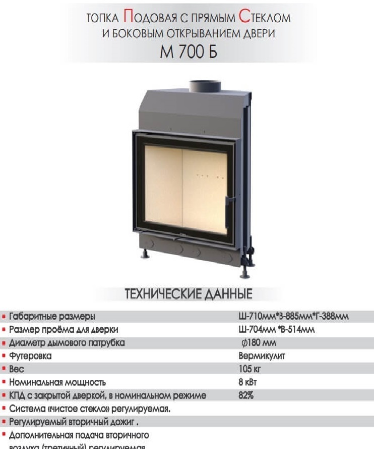 Новинка от компании Астов – кассета К 7454. Присутствует подача воздуха и на вторичный и на третичный дожиг, удобный механизм закрывания двери, полная регулировка горения. В данной модели возможна футеровка в следующих вариациях: панели 3Д и вермикулит. Панели 3Д – тепло распределяется равномерно, а внушительная масса поддерживает высокотемпературное горение. Вермикулит имеет высокую теплоотражающую способность, что значительно увеличивает КПД и коэффициент сгорания. Мощность и необходимые габариты подходящего помещения.Номинальная теплопроизводительность устройства 7 кВт. Оптимальный объём зала 175 м3.